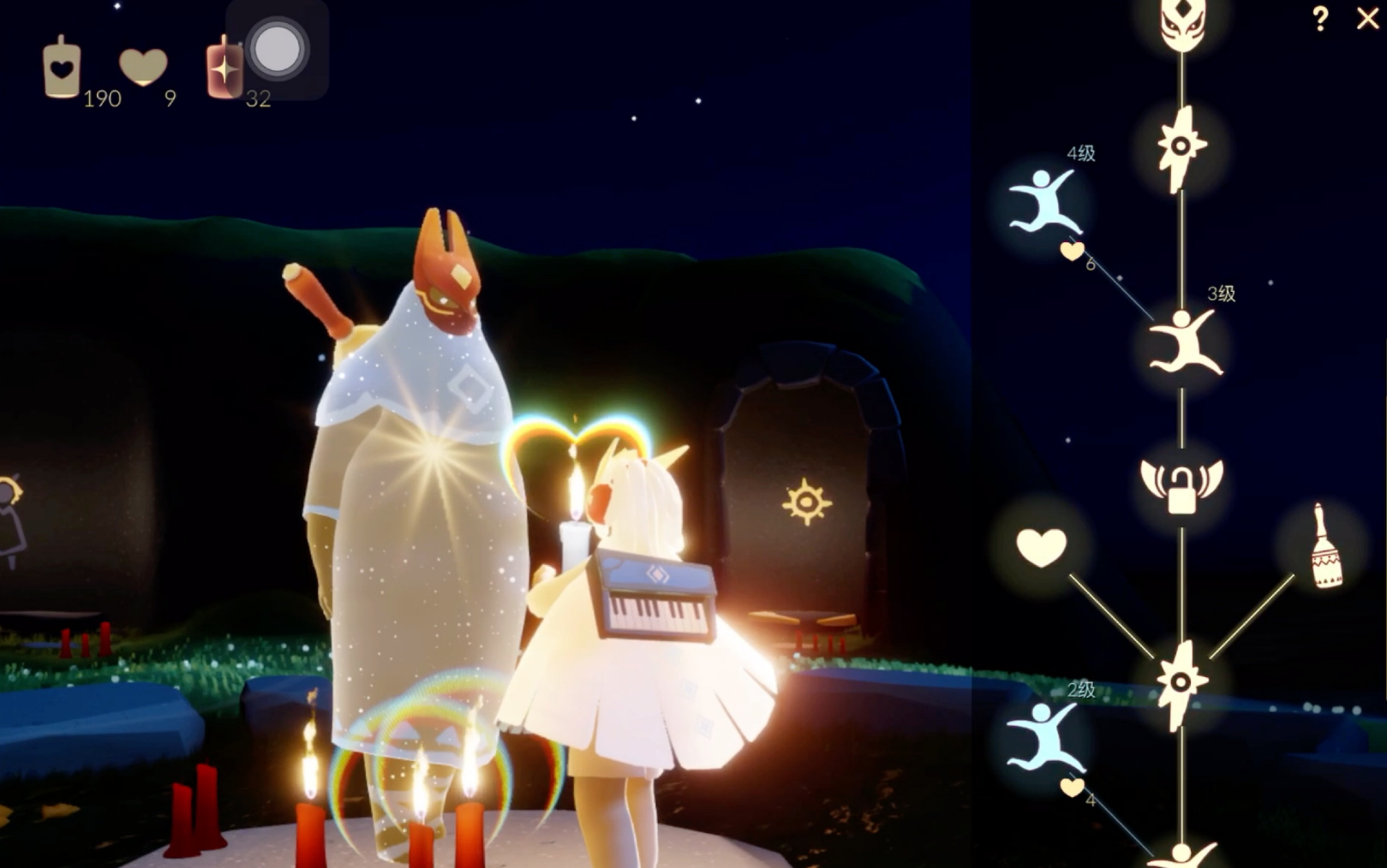 成功追忆先祖后,玩家即可在遇境星盘解锁兑换树。红狐狸面具的兑换节点位于分支末端,通常需要消耗相当数量的白蜡烛作为货币。除了面具本体,该先祖还提供蹦跳动作与铃铛乐器等配套物品。考虑到资源有限,建议优先兑换面具核心道具,其余物品可根据个人需求逐步解锁。兑换时需留意先祖停留时间有限,若蜡烛储备不足可专注于核心物品。