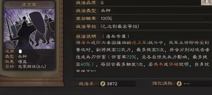 输出型武将优先选择提升武力或暴击的增益类,如提升属性叠加的文武双全;防御型武将适配减伤或恢复类,如每回合稳定回血的合军聚众;辅助武将则可携带群体增益或反击控制类战法。需注意兵种限制,例如虎卫军仅限盾兵且依赖主将受击触发。战法经验有限时应优先升级核心被动,避免资源分散。