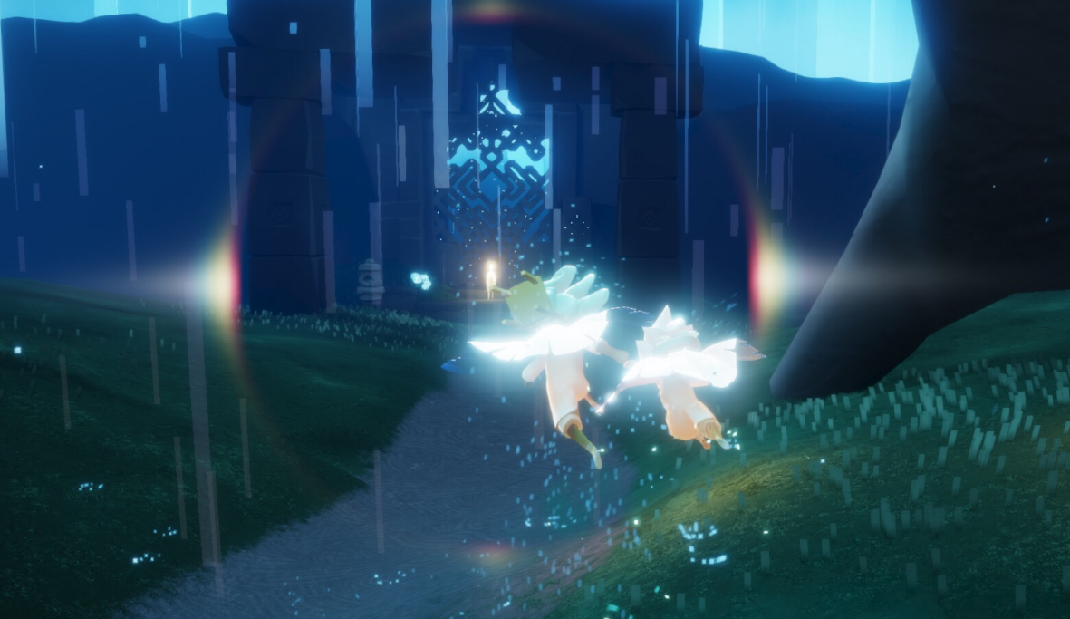 收集过程需规避风险并合理管理资源。螃蟹、冥龙的撞击会导致星星掉落,需迅速返回原位拾取。能量不足时靠近蜡烛或好友可恢复斗篷能量,避免飞行中断。斗篷的星星数量直观反映当前翅膀等级:单颗星星代表一翼,五翼以上则以叠加方块形式显示,十翼玩家可见五个方块。此设计便于玩家实时评估成长进度。