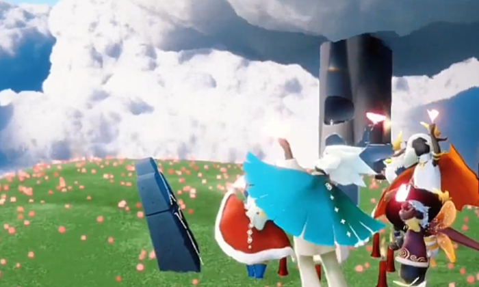 玩家需前往云野地图中的特定召唤地点。进入云野后,穿过初始区域到达蝴蝶平原,再飞向三塔图右侧的山洞。这里有标识性的哈士奇造型石门,需要两名玩家合作使用引蝶动作开启。进入石门后,需通过一个八人升降台到达隐藏区域,这一过程要求玩家收集至少六个云野先祖才能解锁。召唤地点位于隐藏图中一个有石碑的平台,位置较隐蔽,需仔细探索地图细节。