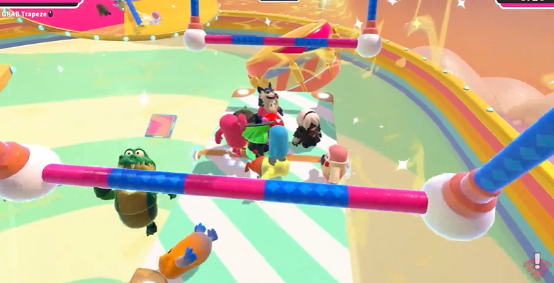 空中竞赛等关卡常伴有风扇气流、移动障碍物或其他玩家碰撞。应对风扇时,需预判风力对秋千摆动幅度的影响——顺风会加大荡幅,逆风则削弱动量,抓握窗口期将相应偏移。若与其他玩家争夺同一秋千,优先占据摆动路径的切入侧位,利用抓握动作的优先级抢占横杆。若遭遇碰撞导致脱手,立即触发飞扑(PC默认E键或鼠标右键)可增加滞空时间争取二次抓握机会,但需注意飞扑后角色硬直时间较长,仅推荐近距离应急使用。