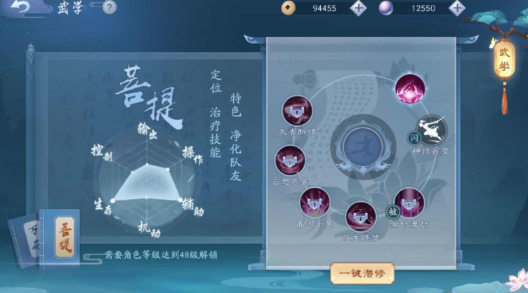 心诀养成侧重参悟策略,初始激活为1重状态,每重均需通过参悟提升属性。恒山心诀属性优选气血加成、格挡强化、治疗增效三类,参悟时消耗武意有概率获得属性提升,配合悟丹可积累祝福值确保成功率。需注意心诀参悟等级受残印最低等阶限制,建议将蓝色品质残印作为基础培养目标以解锁更高参悟空间。防御向属性的稳定积累比追求爆发性数值更符合恒山持续作战需求。
