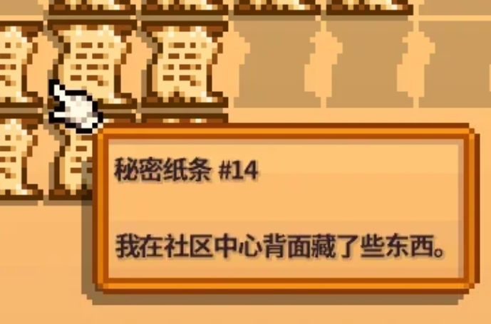 要开始这个任务,你得先获得秘密纸条14本身。秘密纸条系统的开启有一个前置条件,你需要在冬季的某一天(早上6点到下午4点之间)从你的农场步行前往巴士站。这时会触发一段剧情,你会看到一个暗影人跑过去并留下脚印,跟随这些脚印走到社区中心左侧的游乐场,检查那边的灌木丛,就能从暗影人那里获得一个放大镜。有了放大镜之后,你才可能在日常活动中随机找到各种秘密纸条。秘密纸条14的获取方式和其他大多数纸条一样,可以通过钓鱼、砍树、开矿、锄地或者打怪等日常活动有几率得到,并没有特殊的必出方法,所以需要一点耐心和运气。