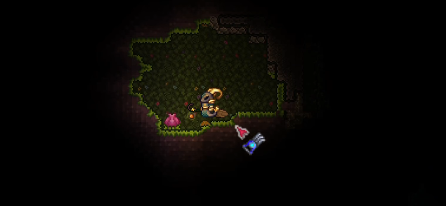 世纪之花花苞生成于地下丛林区域,其外观是一个粉红色的、体积较小的球茎状物体,附着在丛林草生长的泥块上,在黑暗环境中会发出微弱的亮光。由于其尺寸不大且颜色与丛林环境部分相似,直接肉眼寻找有一定难度。玩家可以按M键打开世界地图并放大视图进行搜寻,在地图上花苞会显示为一个粉红色的小点。借助一些具有探测功能的游戏内工具或物品,可以辅助定位这些隐藏的花苞。