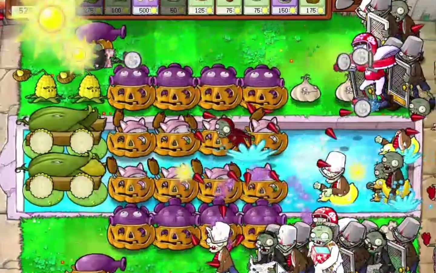 搭梯前要完成充足准备,选卡必须包含大蒜、南瓜头、冰西瓜、忧郁蘑菇、玉米加农炮等,预留至少三千以上阳光,阵型优先选经典八炮阵,在3至6波僵尸来袭时启动搭梯,此时僵尸种类少、数量低,便于精准控制。先给所有需防护的核心输出植物套上南瓜头,水路与陆路的冰西瓜、忧郁蘑菇是优先保护对象,这些植物是阵型输出核心,一旦被小鬼僵尸破坏,整体火力会大幅下降。搭梯时要临时铲除目标路径上的高伤害植物,比如大喷菇、地刺王,避免梯子僵尸未抵达目标就被击杀,同时用冰西瓜减速控制节奏,让梯子僵尸保持稳定行进速度。