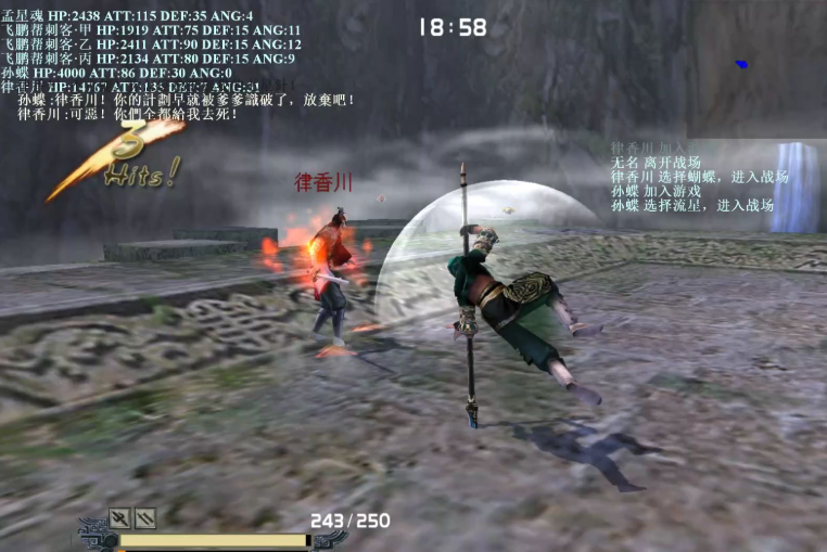 打到中后期,对手屠城是最终目标,但过程很棘手。当你把屠城打到差不多半血时,场面会突变,四个蒙面高手突然杀出来搅局。这四个家伙可不是省油的灯,攻击猛、速度快,硬刚基本是送人头。你得利用水潭地形和障碍物跟他们周旋,绕着跑,把他们引开,或者让他们卡在远处。核心思路就是别被他们围住,同时找机会继续输出屠城。这四个蒙面人不是必杀的,你的火力要集中在屠城身上,只要成功放倒他,就算旁边还有蒙面人蹦跶,关卡也能直接通过。